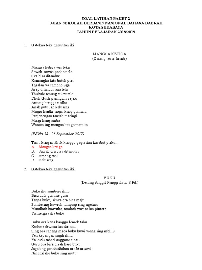 2 from Dasanama kuwi tembung kang nduweni teges luwih saka siji. Rinengga prelune amrih endah, bregas, lan ngresepake. Pokal gawe mara seba budi. Kaya rong taun kepungkur pendidikan indonesia nganggo ktsp 2006, banjur pemerentah ngubah sisteme dadi kurikulum 2013. Sing karêmbug ing buku iki mung pralambang kang kawêdharake sarana basa, yaiku kang awujud ukara. Tuladhane kaya ing ngisor iki. Yaiku basa kang kalebu susastra rinacik mawa basa kang endah. Jinise basa rinengga iku akeh mula ora kabeh basa rinengga diwulangake ing piwulang iki.