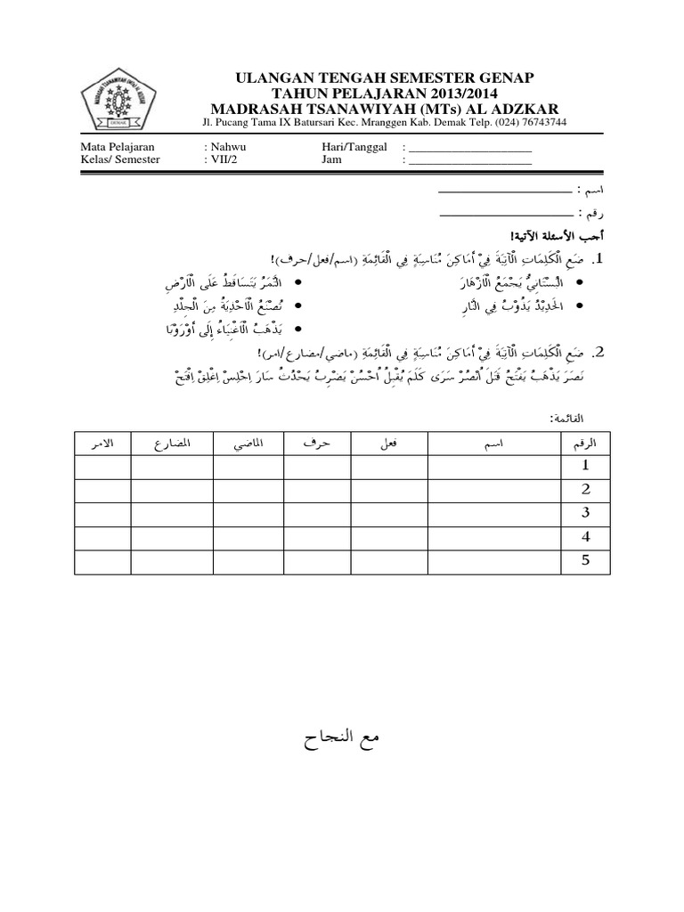 Soal Nahwu Kelas 9 Online Jawabanku Id from imgv2-1-f.scribdassets.com Maybe you would like to learn more about one of these? Check spelling or type a new query. We did not find results for:
